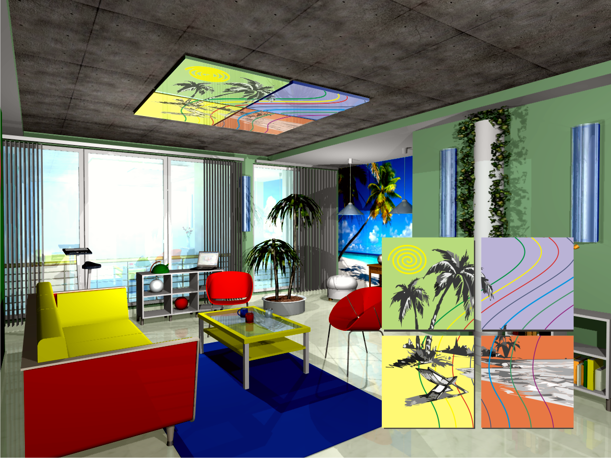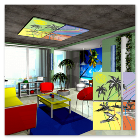 A DPL decor ensemble is a combination of Dalles with or without patterns, fixed to the ceiling or the wall. These