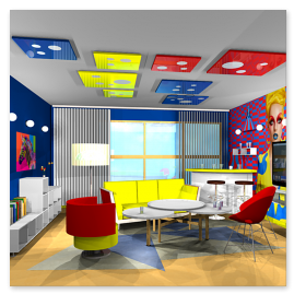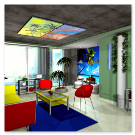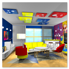 Install several sets of panels DPL on a monotonous ceiling. These sets can be composed of one or more panels DPL. It could be an arrangement like in Tetris or an accent on the important points of the interior. There is no limit. You can add colors or graphic images to the panels - our designers are ready to help.