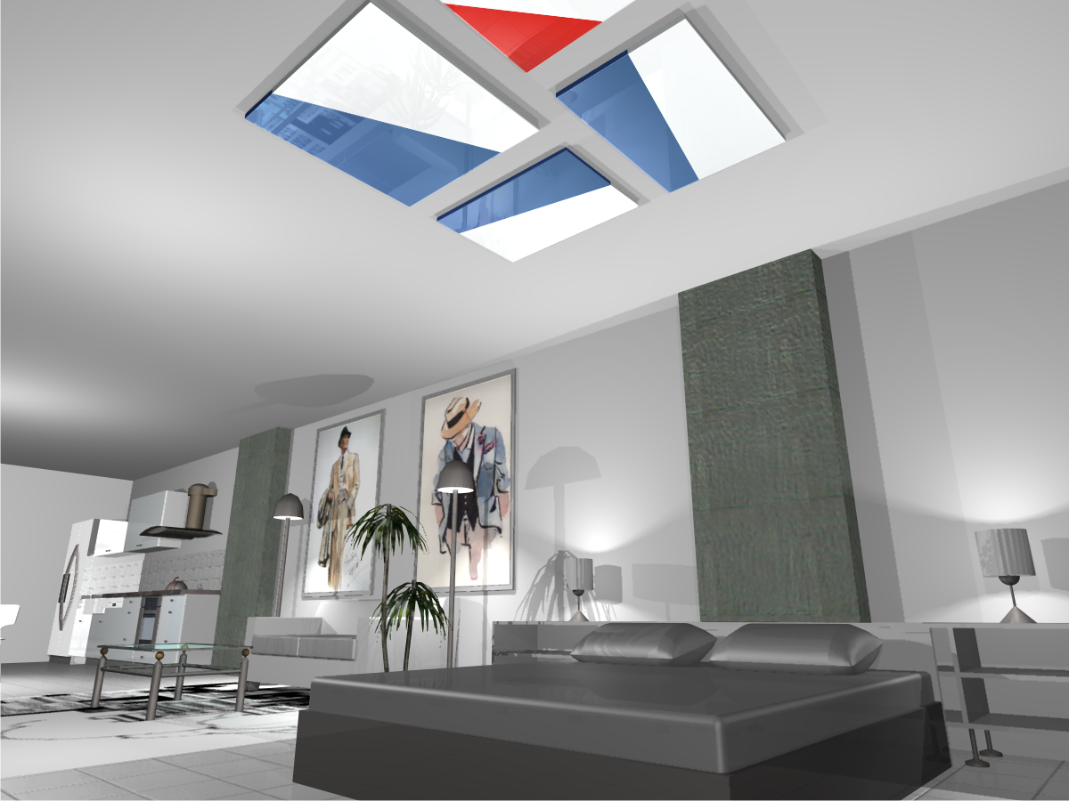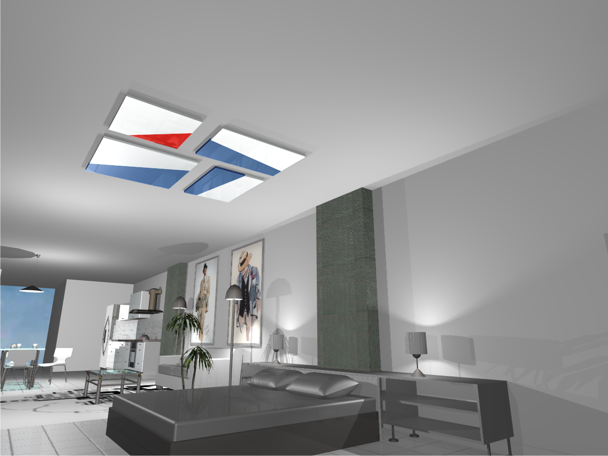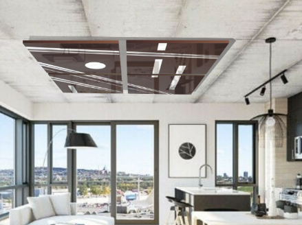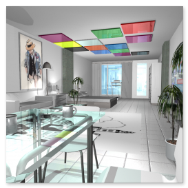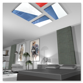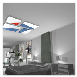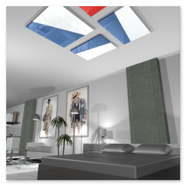 The Ensemble DPL "Decor" is a modern ceiling decoration in the "luxury" style that creates ambiance in your interior. It can consist of four or more DPl panels (Dalles Plafond Lustrees) in various colors or have an image printed on them.