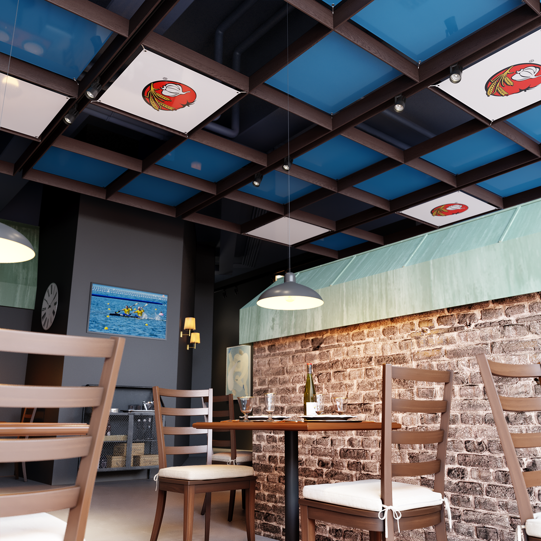 L'Ensemble Décor DPL est une combinaison de Dalles avec ou sans motifs, fixées au plafond ou au mur. Celles-ci peuvent être de différentes couleurs ou comporter une image imprimée. Elles sont installées directement au plafond en groupe ou en unité unique.