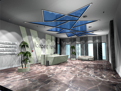 A Suspended Lattice Ceiling DPL is a ceiling structure of an arbitrary shape, which the designer or an architect can set. This structure comprises of intersecting beams with an inline linear LED lightning that is hung on suspensions with some cells being filled with Dalles.